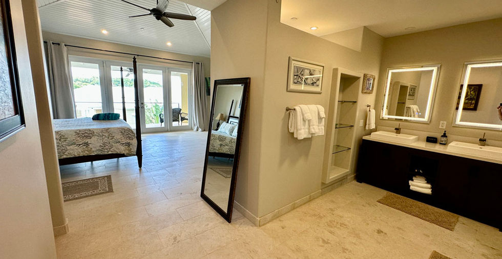 Neptune's Retreat offers three spacious king bedrooms, each with its own ensuite bathroom, along with a convenient powder room off the entrance foyer. The villa's open-concept layout seamlessly integrates the kitchen, dining area, and family room, providing over 2,200 square feet of living space.