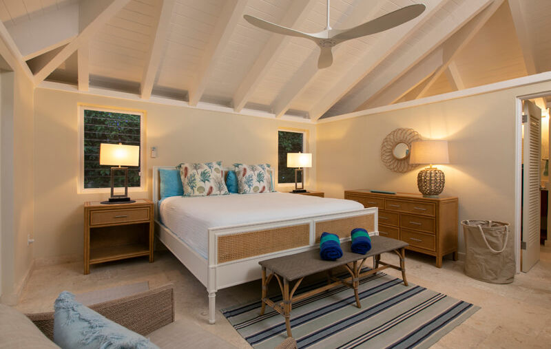 Palm Villa has been newly renovated and beautifully showcases Caribbean architecture. The home features a pool, stylish deck furniture, exposed beam cathedral ceilings, multiple ceiling fans, screened louver windows, French doors, and coral stone tile floors throughout the interior and exterior, creating a comfortable and elegant living space. For added comfort, Palm Villa is equipped with a Tesla battery backup system.